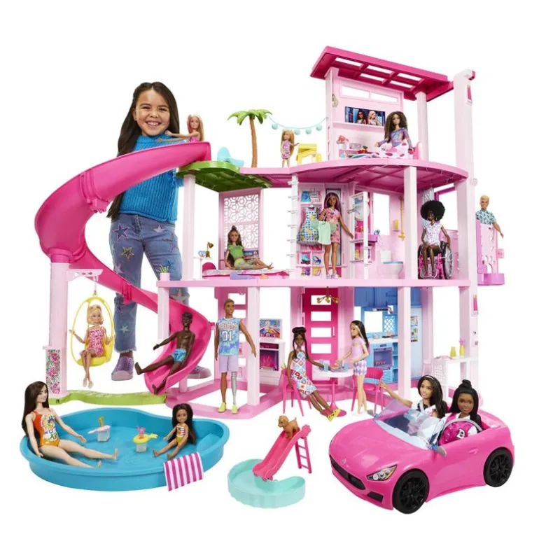 Barn kan arrangere den perfekte bassengfesten med Barbie’s Drømmehus! Dette luksuriøse dukkehuset har den høyeste sklien i Barbie Drømmehus-serien noensinne, med tre-etasjes spiraldesign for massevis av lek og moro i solen. Huset inspirerer til 360-graders lek med et bredt og romslig gulvplan, tre nivåer, og 10 oppholdsrom inne og ute. Lekesettet har også flere dyrevennlige detaljer enn noensinne, inkludert en valpesklie og et basseng der pelskledde venner kan leke med Barbie -dukken. I tillegg finnes det et bonusrom i øverste etasje i Drømmehuset som kan gjøres om til overnattingsrom med plass til fire dukker.