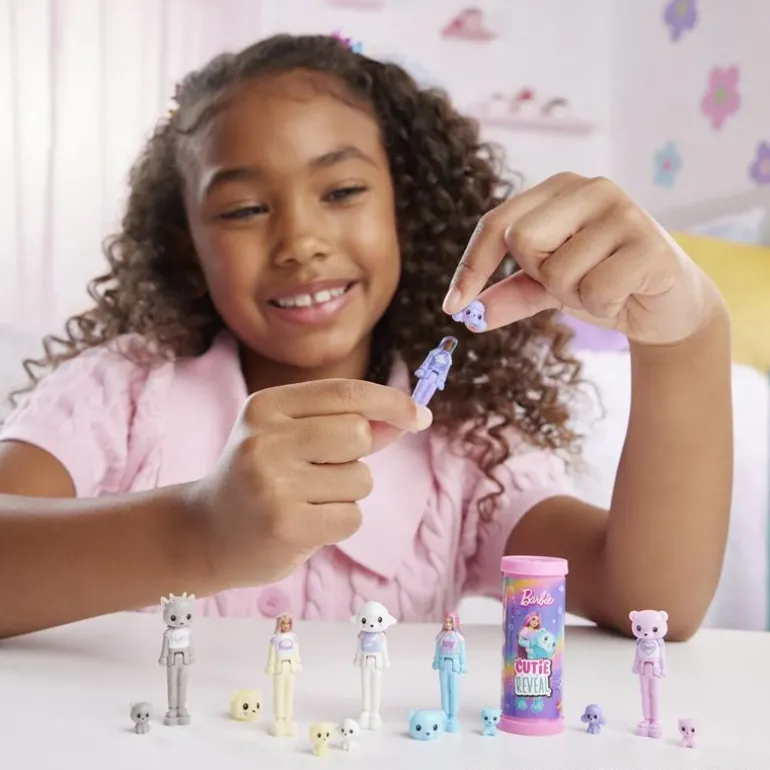 - 4 cm høy minifigur av Barbie i søt Cutie Reveal-stil