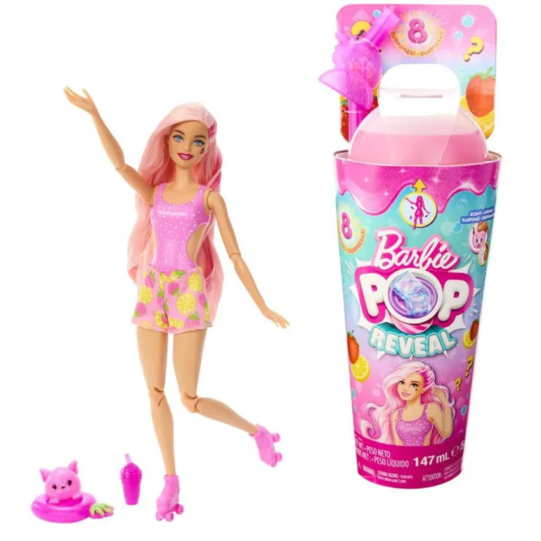 Barbie Pop Juicy Fruits Reveal Dukke – Jordbærlimonade