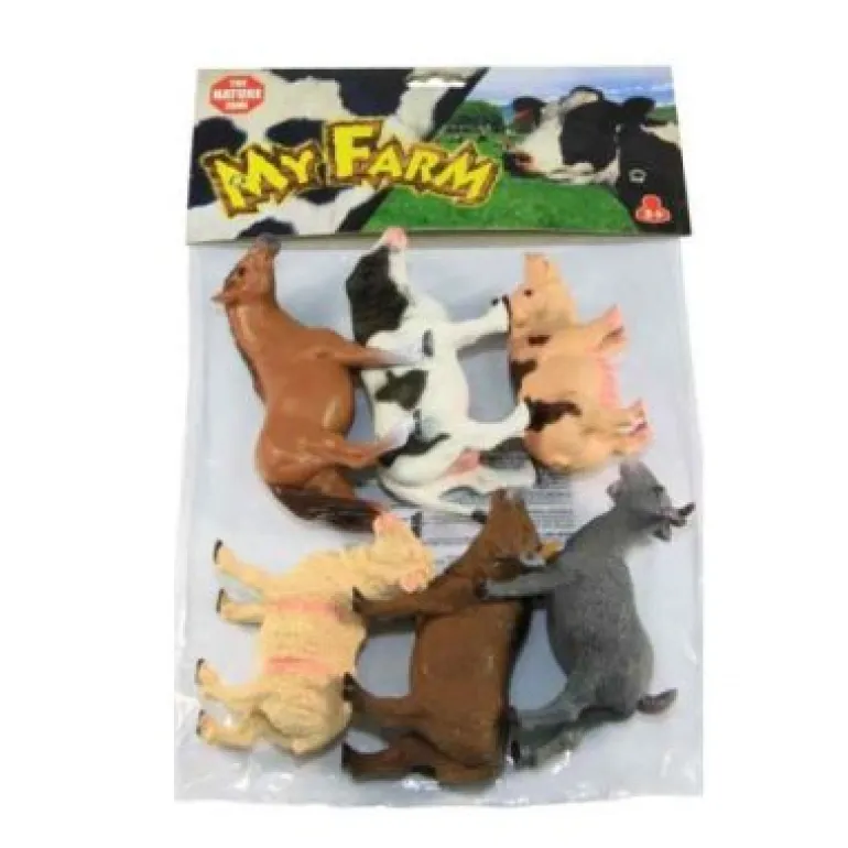 Flott sett med 6 forskjellige bondegårdsdyr. I pakken finner du gris, ku, hest, okse, geit og sau! Dyrene måler måler mellom 10-12cm. Anbefalt alder: 3+