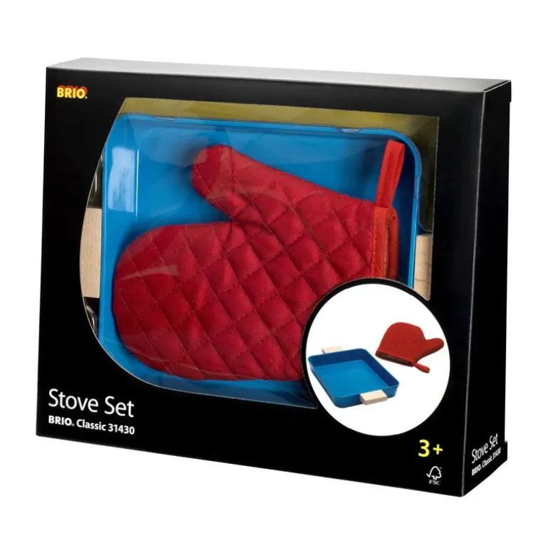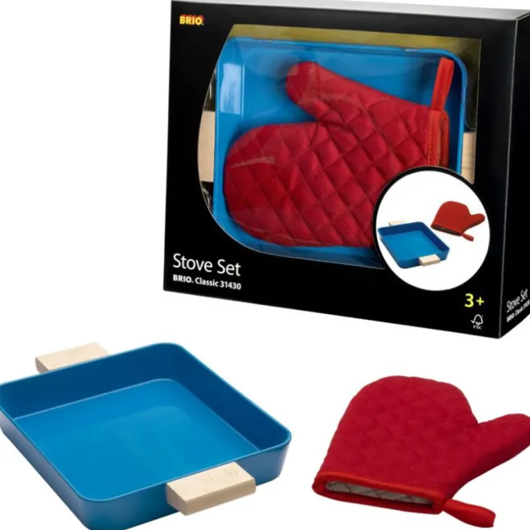 Klar, ferdig, bak! Utvid Brio lekekjøkkenet med denne bakeplaten med trehåndtak. Platen passer perfekt inne i Brio lekeovnen. Grillvott i tekstil og grytelapper oppmuntrer også til rollelek i kjøkkenet.