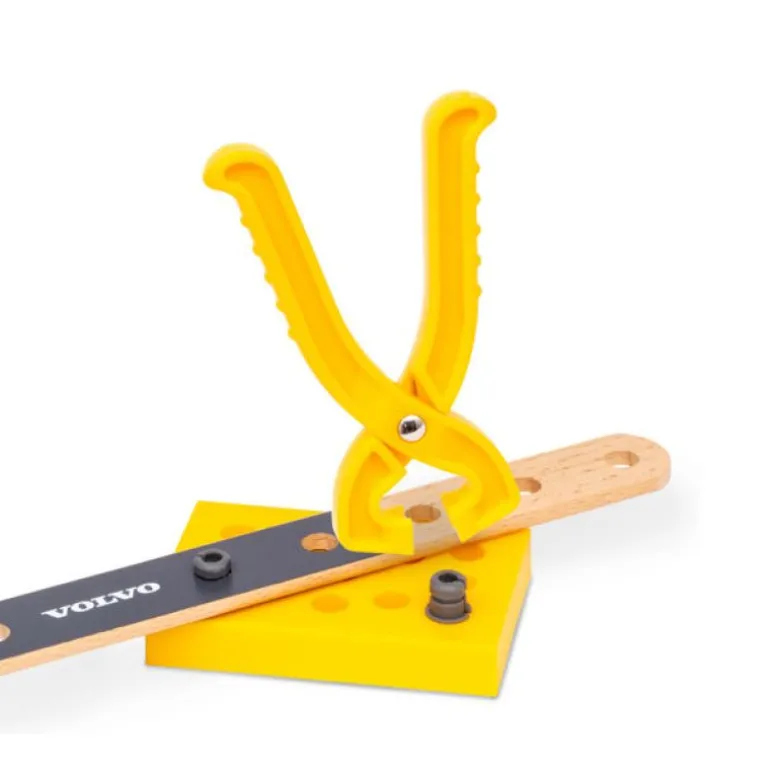 34598 Builder Volvo-hjullaster inneholder 58 deler; 1 tang, 1 batterilampe, 55 lekekomponenter og 1 bruksanvisning.