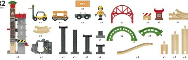 Å… bygge vertikale former er naturlig spennende. Løft og last lagersettet gjør akkurat det mulig og er helt uimotståelig. Bygg stablingsbare broer, svinger og bakker midt oppå lageret. La heisen løfte alle vognene helt opp for så å laste dem av slik at de kan rulle ned igjen. Settet gir deg mange muligheter. Du velger selv hva du vil bygge, men bygg høyt!