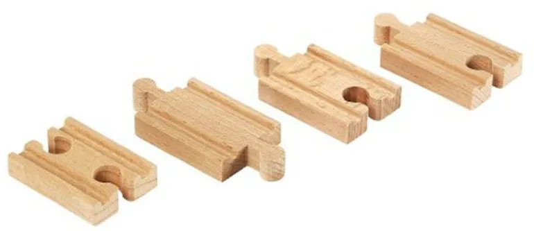 Sett med 4 små skinner, lengde 54mm, til utbygging av Brio togbane. Fra 3 år.