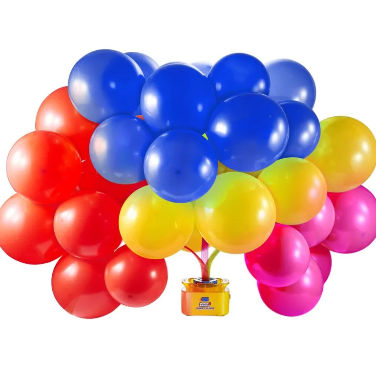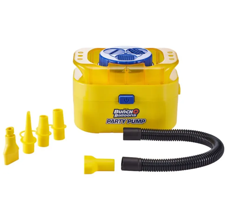 Ballonger må være det kuleste fest tilbehøret en kan ha! Det er derimot ganske kjipt å måtte blåse opp en haug med ballonger. Heldigvis har Bunch O Balloons kommet med tidenes pumpe som kan pumpe opp 40 ballonger på 40 sekunder. I tillegg får du med 16 ballonger i to forskjellige farger som lukker seg selv og i tillegg har tråd festet i seg. PERFEKT! Ballongene blir ca 30 cm i diameter. Blir ballongene slappe kan du enkelt koble de på igjen og fylle på luft. Pumpen kan brukes om igjen og om igjen. Selvlukkende ballonger kan du også kjøpe ekstra av separat. Pumpen leveres sammen med slangeadapter som du også kan bruke til å blåse opp luftmadrasser og bassengleker. Pumpen fungerer også med heliumtank/luftkompressor.