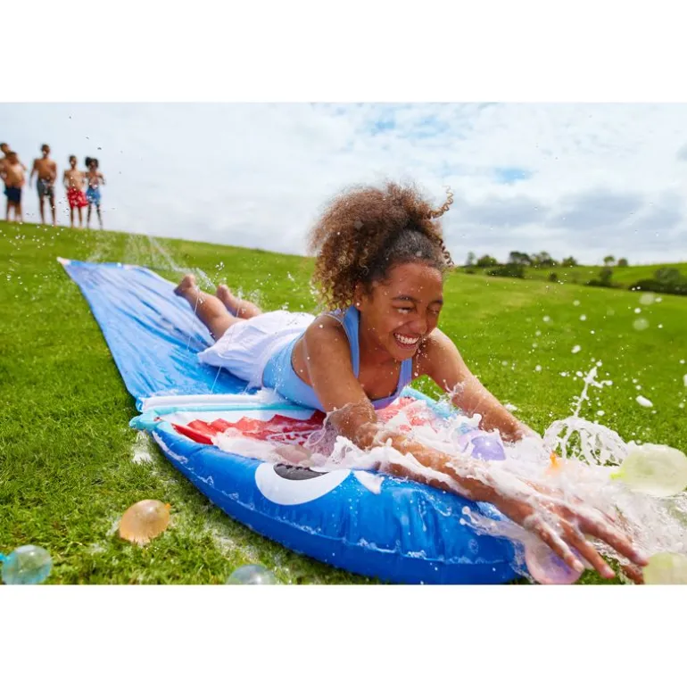Fortsett inn i sommeren med Bunch O Balloons Shark Bite vannsklien! Skli ned 4,8 meter og skli rett inn i haiens munn! Shark Bite vannsklien kommer med 3x stammer til Bunch O Balloons (mer enn 100 ballonger) for å plaske i masse moro!