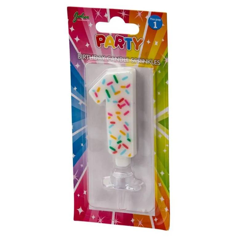 Det er jo ikke en skikkelig bursdagskake uten bursdagslys! Dekorer kaken med alderen til bursdagsbarnet med dette stilige stearinlyset med dryss.