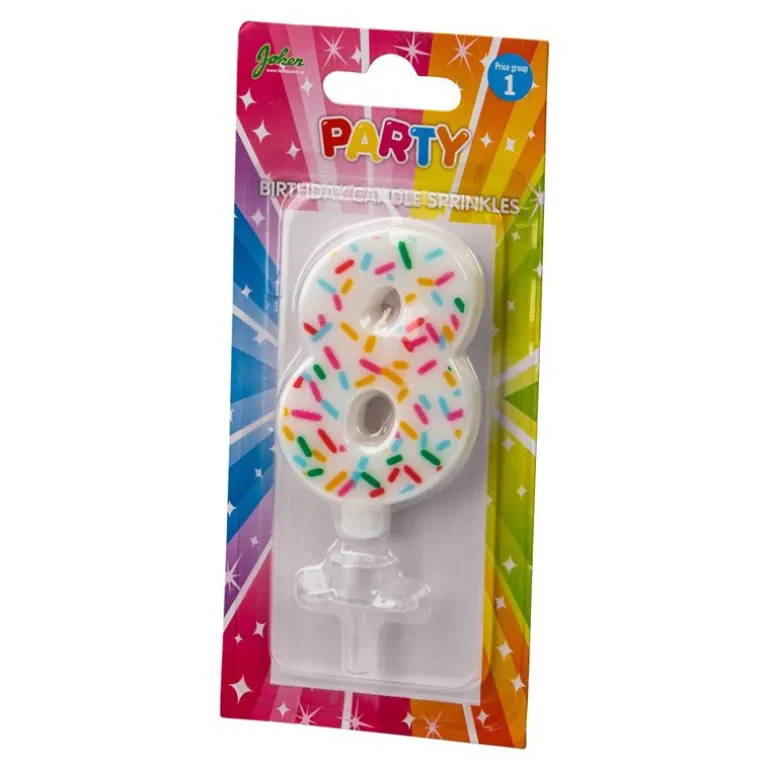 Det er jo ikke en skikkelig bursdagskake uten bursdagslys! Dekorer kaken med alderen til bursdagsbarnet med dette stilige stearinlyset med dryss.