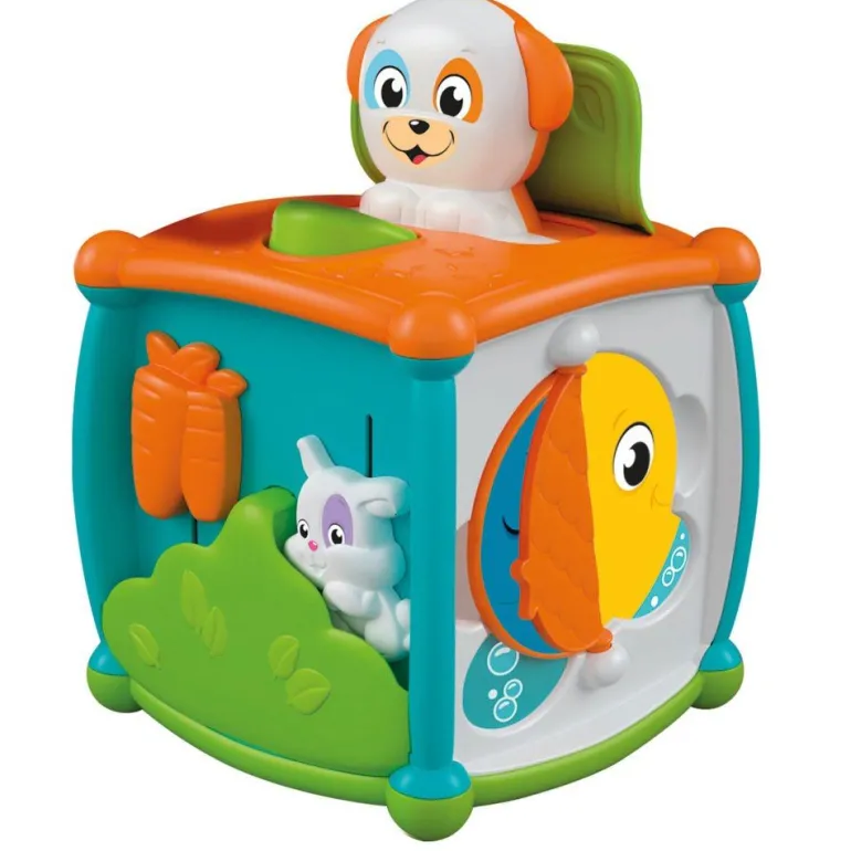 En magisk kube fyllt med interaktive aktiviteter. pop-ups og overraskelser venter på å bli oppdaget. Den inkluderer 5 sepparate lekeområder som kan utforskes. Denne leken kan hjelpe med å bygge en forståelse av årsak og effekt og stimulerer håndkoordinasjon og nysgjerrighet.