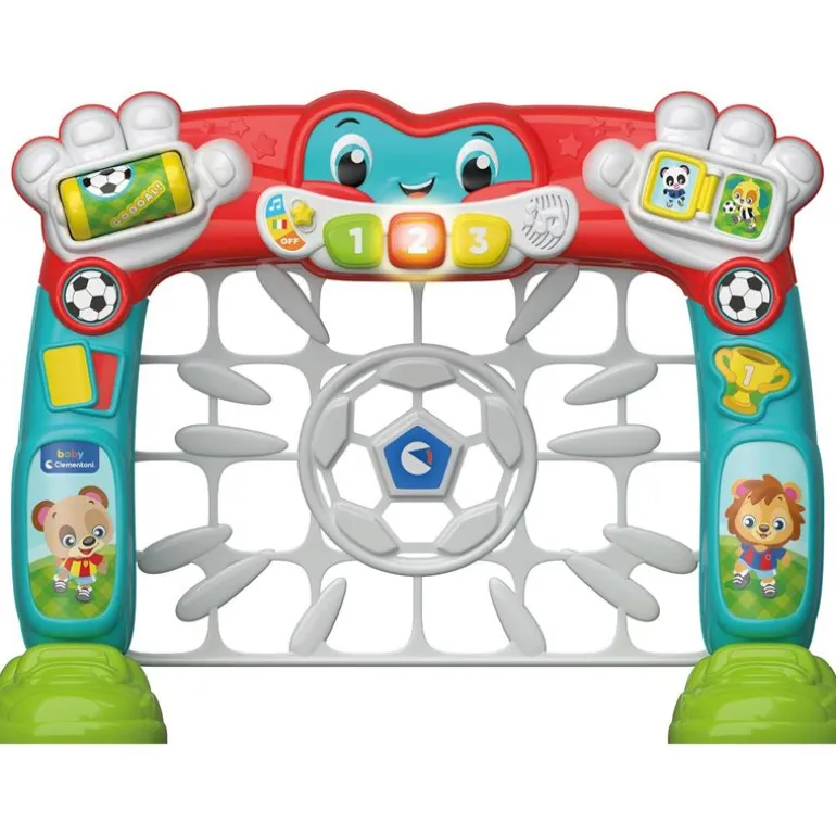 Et interaktivt fotballmål fra Clementoni Baby-serien som gjenkjenner scorede mål, med en veldig myk ball og mange realistiske lyder! De 3 fargede knappene aktiverer realistiske lyder og musikk som veileder barnet i en interaktiv og engasjerende spillopplevelse.