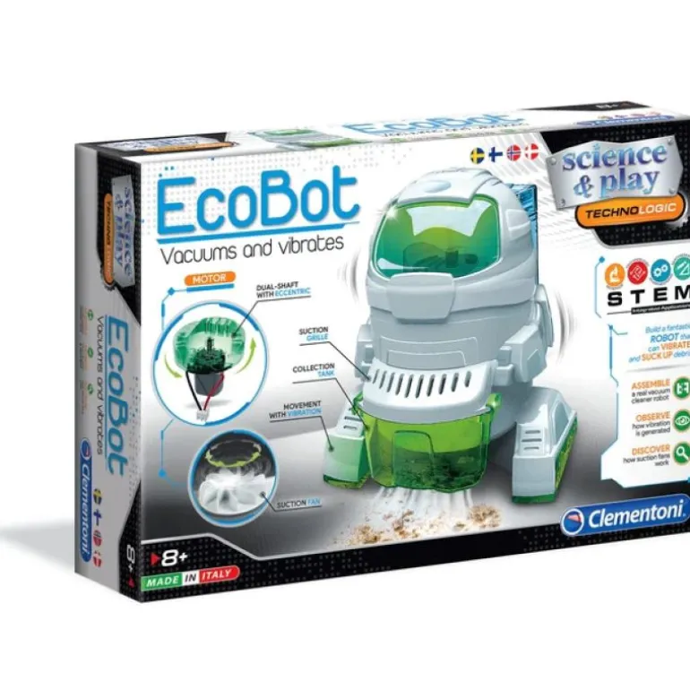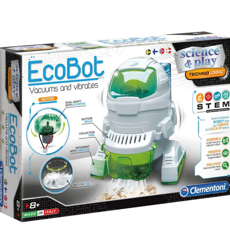 Denne flotte lille roboten fra Clementoni er enkel og underholdende å bygge fra bunnen av. Utstyrt med en dobbeltaksel elektrisk motor og vifte, kan denne lille roboten løsne og suge opp små rusk som støv og krummer, akkurat som en støvsuger! Den medfølgende håndboken og omfattende vitenskapelig informasjon gjør dette settet til den perfekte første trinnet inn til robotenes verden. Størrelse: 6,00 x 27,60 x 18,80 cm. Anbefalt alder fra 8 år.