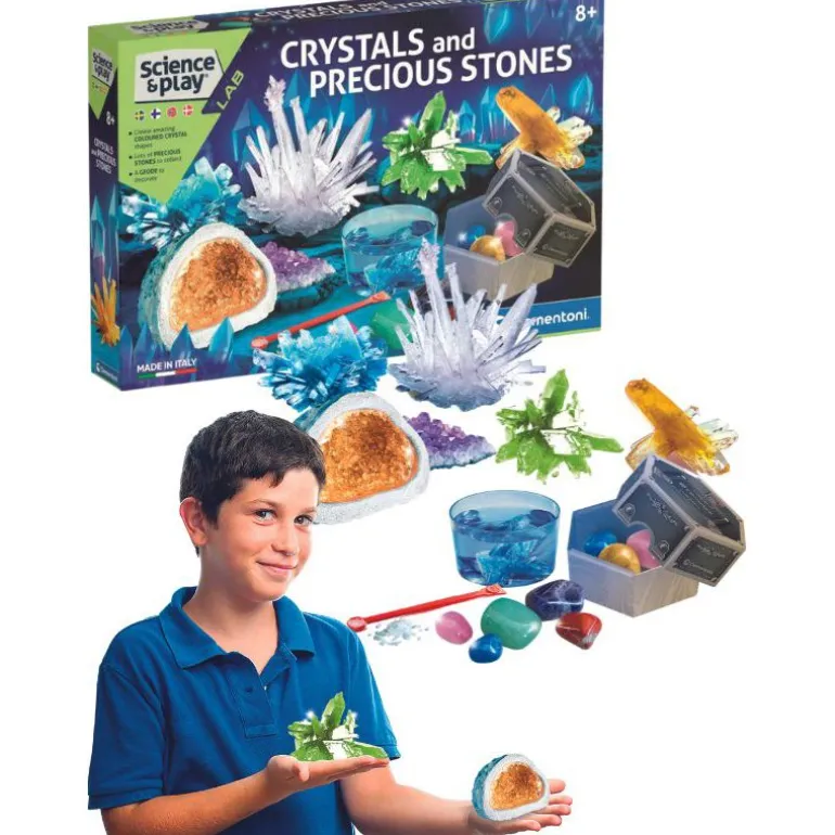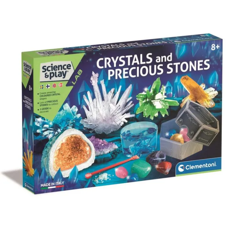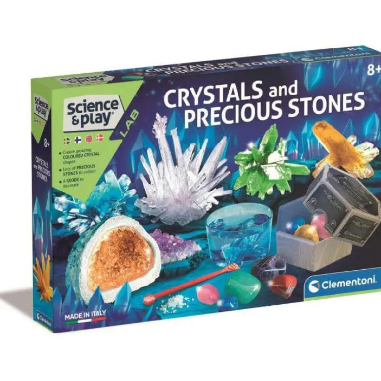 Er den en liten fan av bergarter og mineraler i huset? Her er et vitenskapelig «Science & Play LAB» -sett fra Clementoni med alt du trenger for å lage strålende gigantiske og fargerike krystaller! Settet kommer med mange sjeldne og iøynefallende edelstener som barn kan studere og samle: ametyst, blå agat, rosenkvarts, aventurin og mye mer å oppdage! Takket være de medfølgende tilpassede boksene kan barn forsiktig lagre edelstener.
