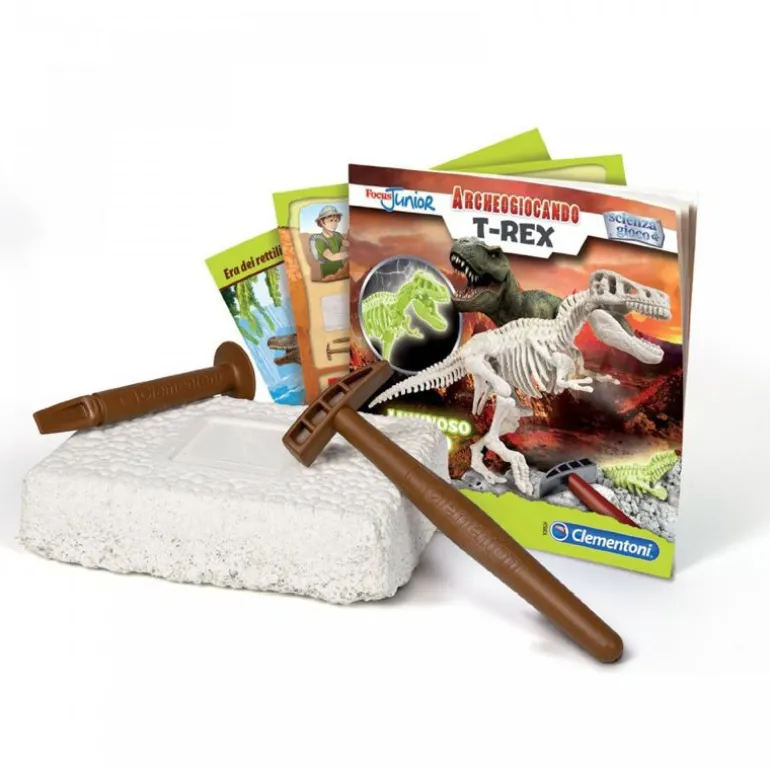 Hopp tilbake i tid med det stilige Clementoni Science & Play arkeolog lekesettet! Bruk en palentolog’s verktøy for å grave opp dinosaur fossiler og sett sammen fossilene for å lage din egen Tyrannosaurus Rex dinosaur som lyser i mørket! Fantastisk!