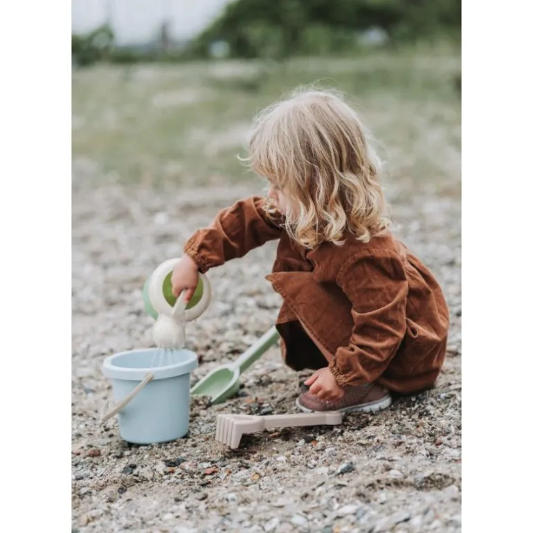 Et fint sand- og hagesett med bøtte, vannkanne, spade og rive. Settet er ideelt for lek og læring på stranden eller i sandkassen. Å leke med sand og vann styrker barnets motorikk og sanseutforskning.