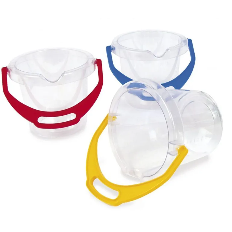 Gjennomsiktig plastbøtte fra Dantoy med blått håndtak. Perfekt til å ha krabber og andre smådyr i. Høyde 14cm