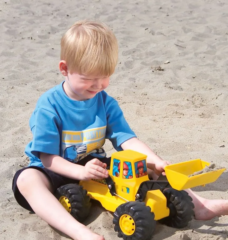 Stilig frontlaster fra Dantoy med solide hjul og bevegelig lasteskuff for graving og frakt. Denne solide frontlasteren er perfekt til lek både ute og inne.