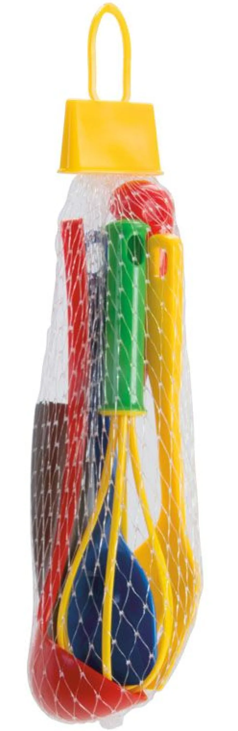 Sett med fem kjøkkenredskap i plast fra Dantoy. Perfekt for små kokker! Settet inneholder kniv, øse, stekespade, skje og visp. Alle deler er i solid og fargerik plast som tåler oppvaskmaskin.