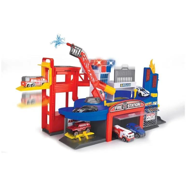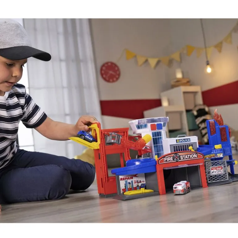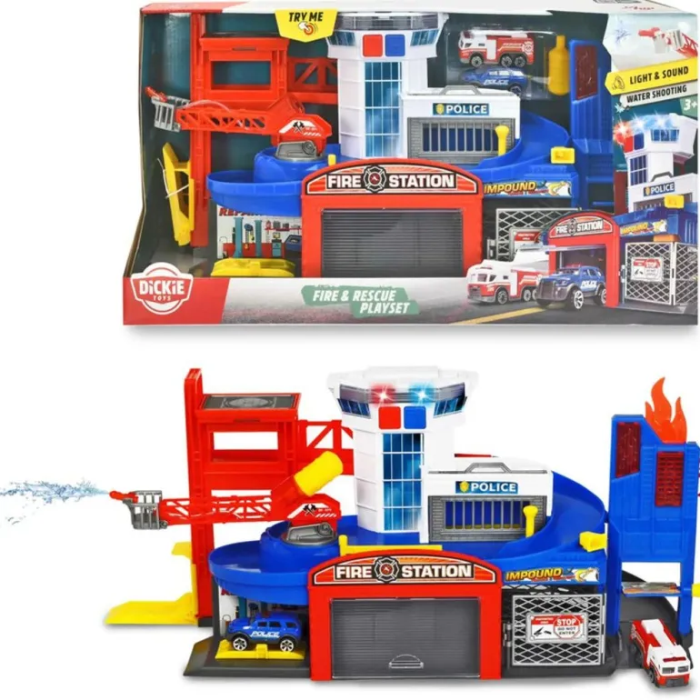 Det er alltid noe som skjer på denne brannstasjonen. Med «Fire & Rescue Playset»-lekesettet fra Dickie Toys