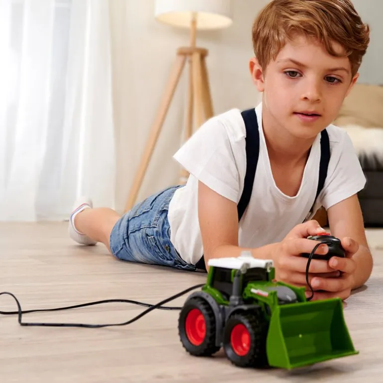 Transporter tung last med denne 14 cm lange kabelstyrte Fendt-traktoren fra Dickie Toys! Traktoren er offisielt lisensiert av Fendt og har en stor skuffe foran som er perfekt for transport av materiell. Takket være de brede dekkene med godt grep kan den brukes på en rekke underlag, både innendørs og utendørs.