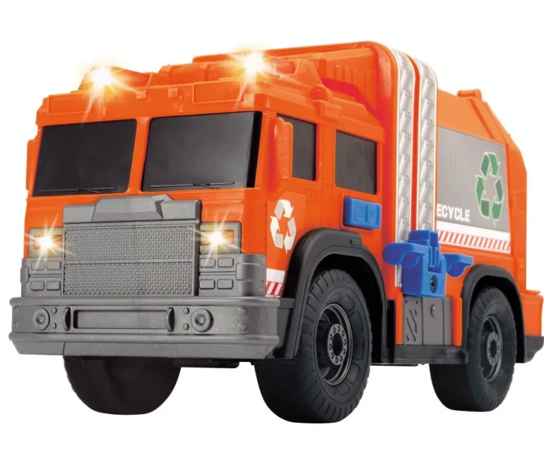 Hold det rent med denne store søppelbilen fra Dickie Toys. Kast søppelet i søppeldunken og tøm det i søppelbilen. Kjøretøyet har lys og lyd og realistiske detaljer for morsom lek. Søppelbilen måler ca. 30 cm i lengde og batterier er inkludert.