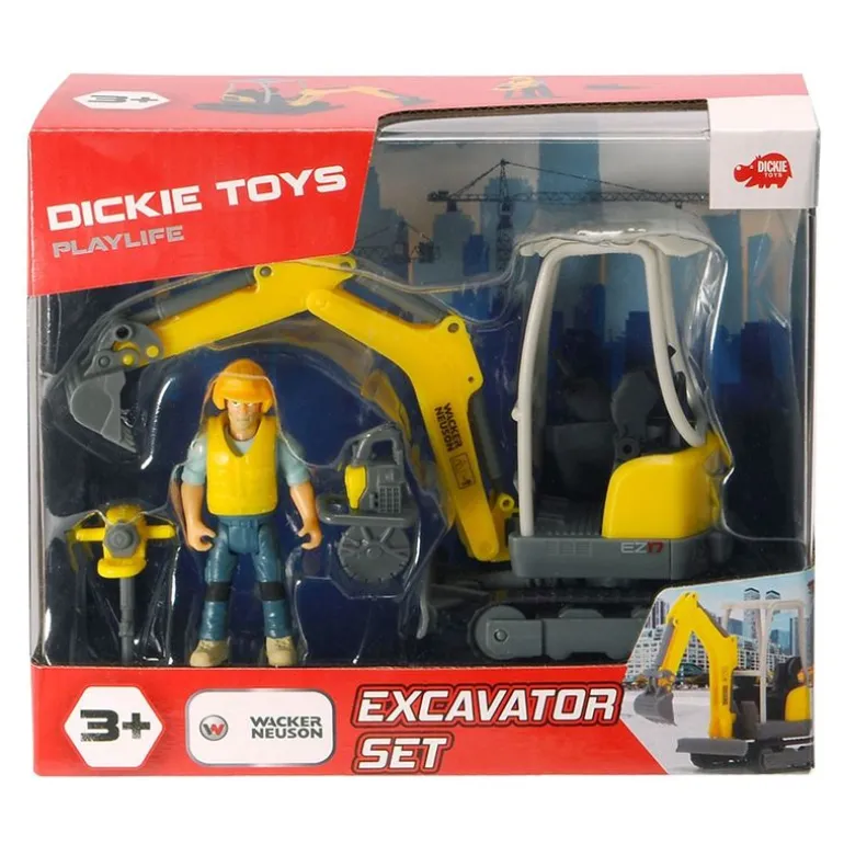 Dickie Toys playlife bringer hverdagslige ting til barnerommet og oppfordrer barna til å bruke fantasien i morsom rollelek. DU kan dra på campingturer eller på redningsoppdrag i fjellet, eller så kan du tilbringe en spennende dag rundt arbedsmaskiner å bygge og reparere. Gravemaskinen kommer med bevegelig gravearm, en figur som kan sitte inni gravemaskinen, og mer tilbehør som kan brukes på arbeidsplassen.