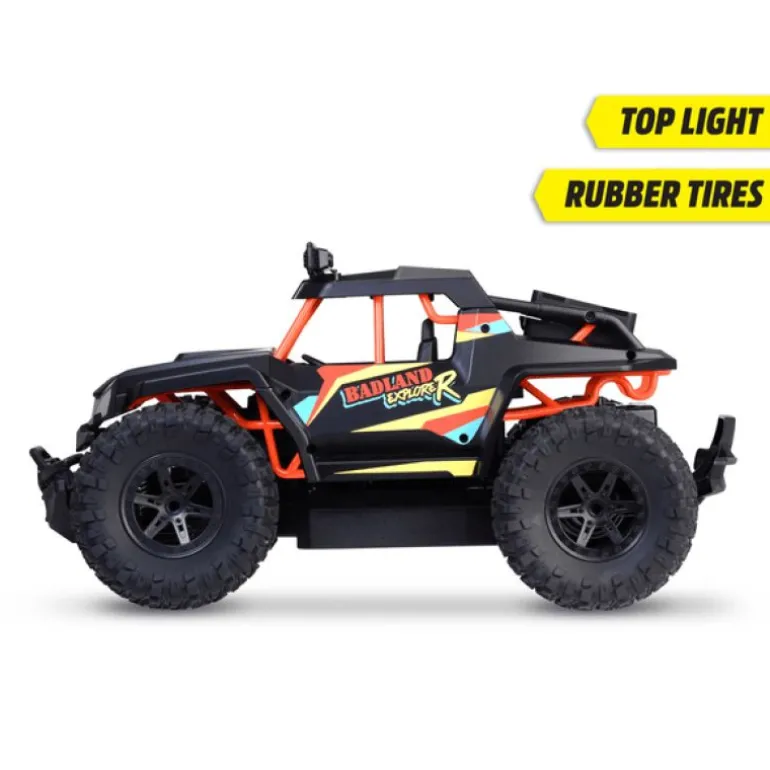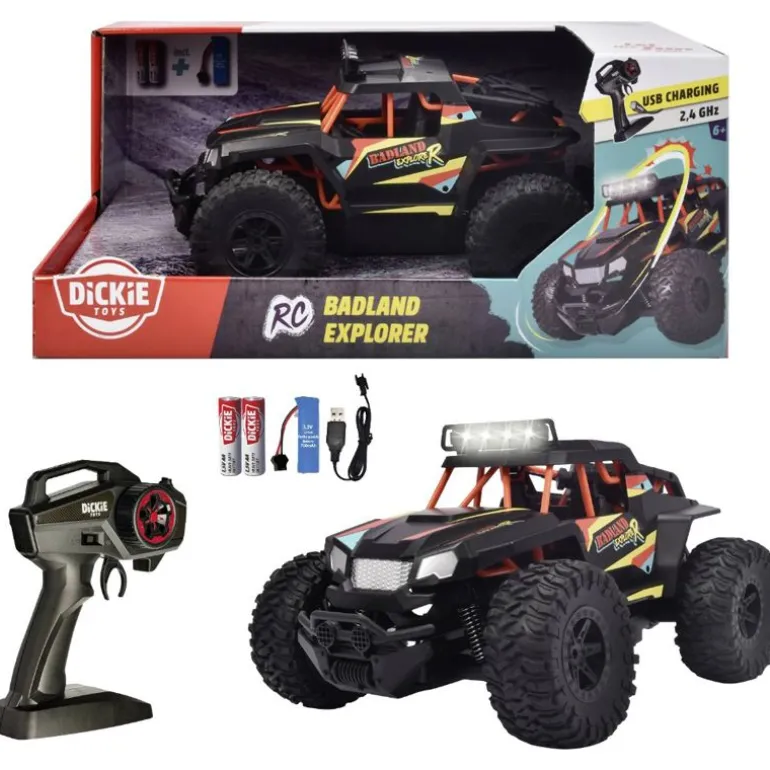 Den fjernstyrte offroadtrucken tilbyr fulle kjørefunksjoner i hastigheter på opptil 15 km/t. Det integrerte Li-ion-batteriet (700 mAh) lades på 90 minutter via USB-kabel og byr på opptil 15 minutter med kjøreglede. Batteriene til fjernkontrollen (2 x AA) er også inkludert.