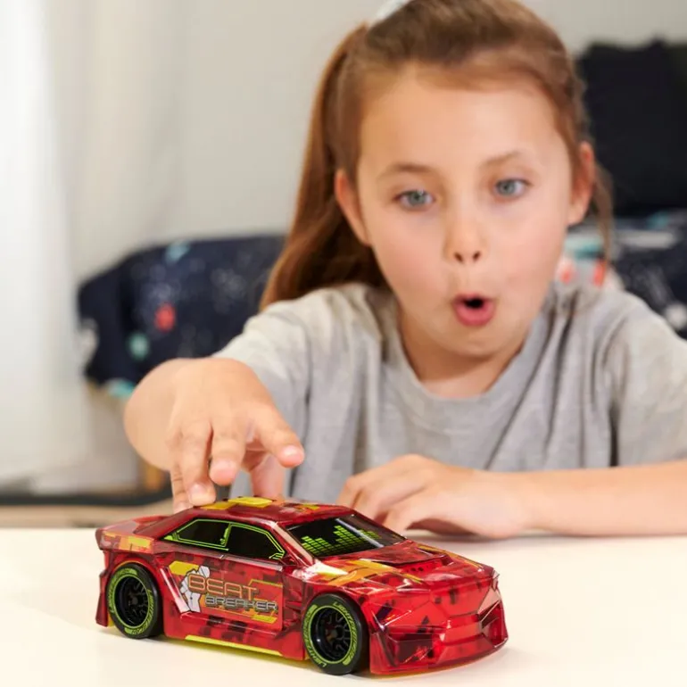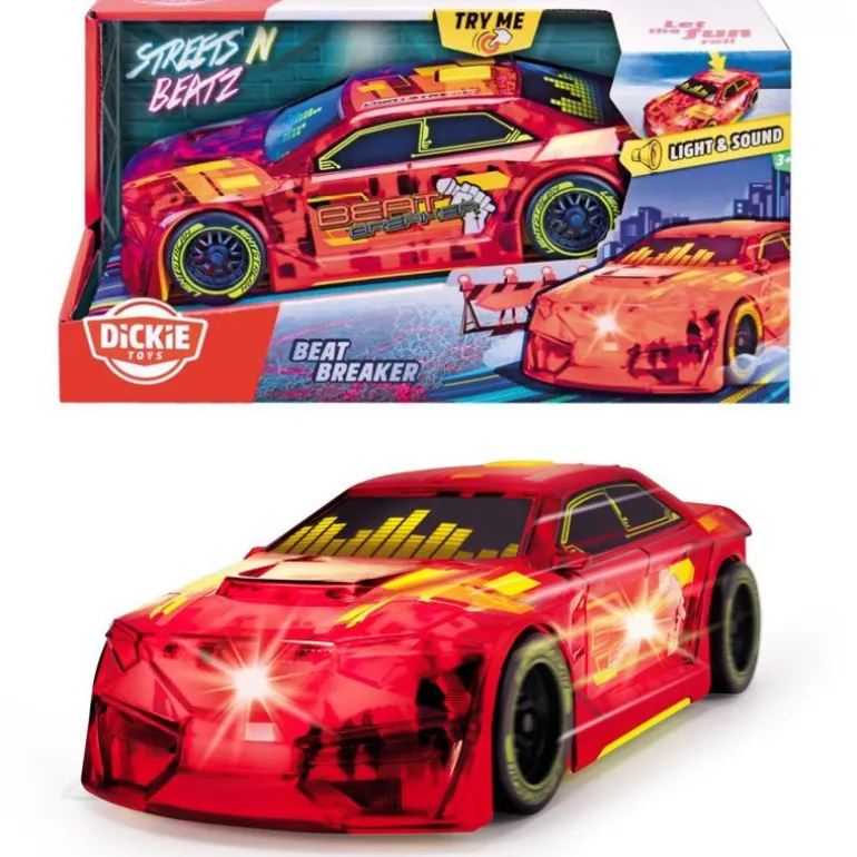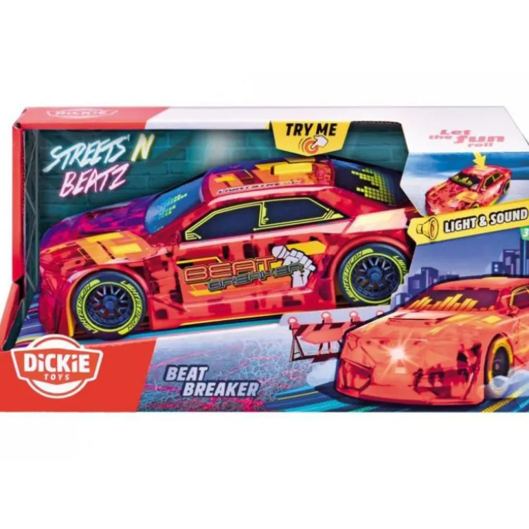 Denne lekebilen er utstyrt med et innebygd musikksystem som spiller morsomme og engasjerende sanger. Perfekt for å sette stemningen for lekeeventyr! Med blinkende lyseffekter, gir Beat Breaker barnet ditt muligheten til å skape spennende scener og utforske verden med fantasi og glede. Lekebilen har et detaljert utforming og autentiske farger, noe som gir barnet ditt en realistisk lekeopplevelse.