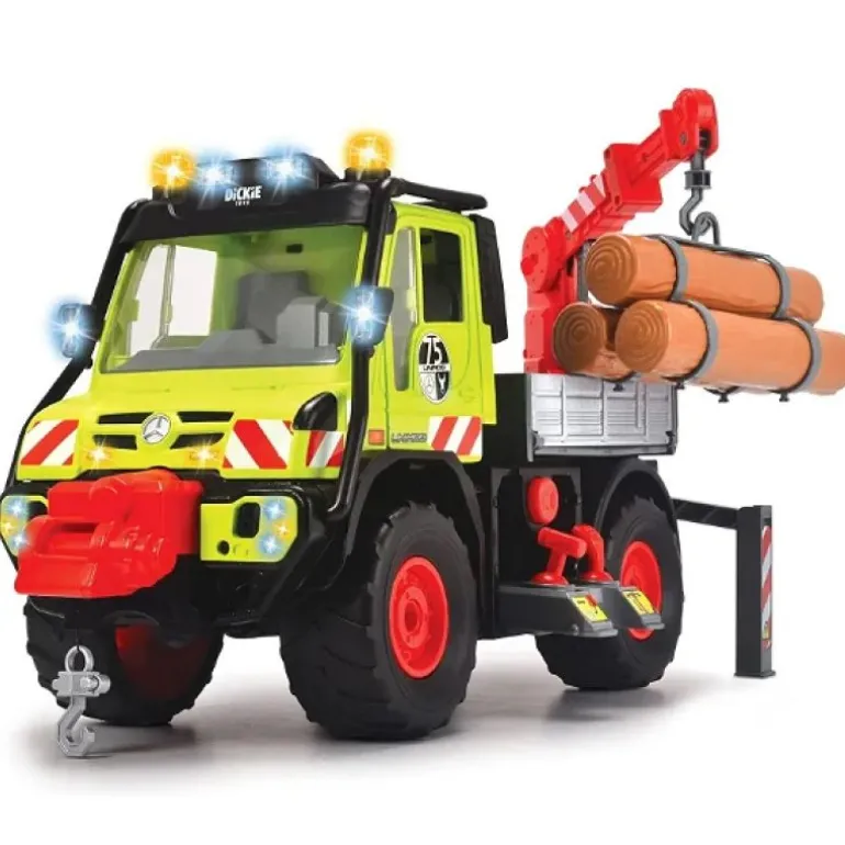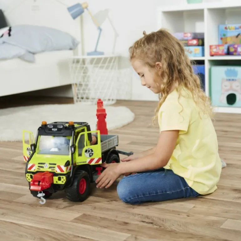 Kjøretøyet er modellert på Mercedes-Benz Unimog U530 og har en svært detaljert design. Kjøretøyet har realistiske lydeffekter og et oransje varsellys for å varsle andre trafikanter. De 3x AA-batteriene som følger med produktet, er for «Prøv meg»-funksjonen. Ytterligere 4x AA-batterier kreves for å drive kranen og svingarmen.
