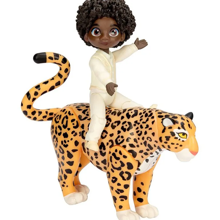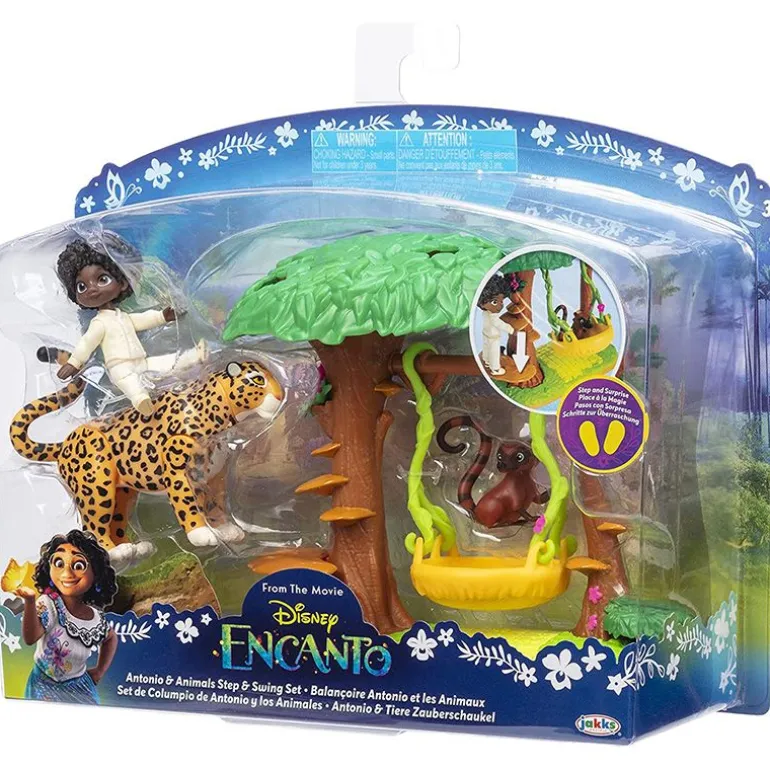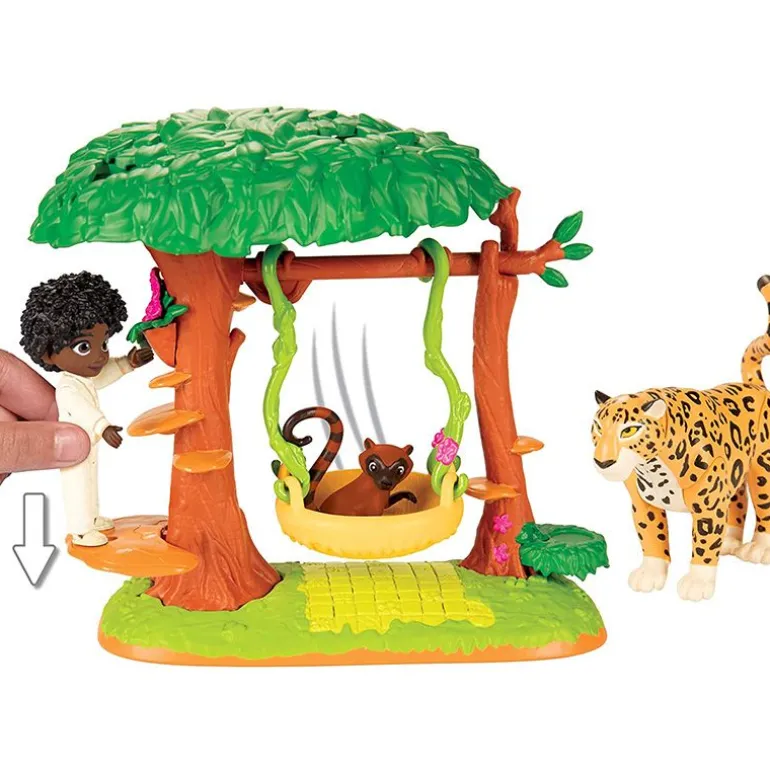 Utforsk den magiske verdenen til Disneys Encanto med Antonio. Spill ut scenen der Antonio mottar sin magiske gave til å kommunisere med dyr, og inviterer dem inn i det fortryllede regnskogsrommet sitt! Dette settet inkluderer Antonio, hans jaguar- og coati-venner, og en morsom dyrehuske inspirert av trærne som vokser i det magiske rommet hans. Når Antonio blir plassert på plattformen på treet, svinger han coati-vennen frem og tilbake! Husken løsner også fra greinene for å bli en seng for coati. Med ledd i bena kan Antonio også sitte på jaguaren og late som han drar på tur, akkurat som i filmen!