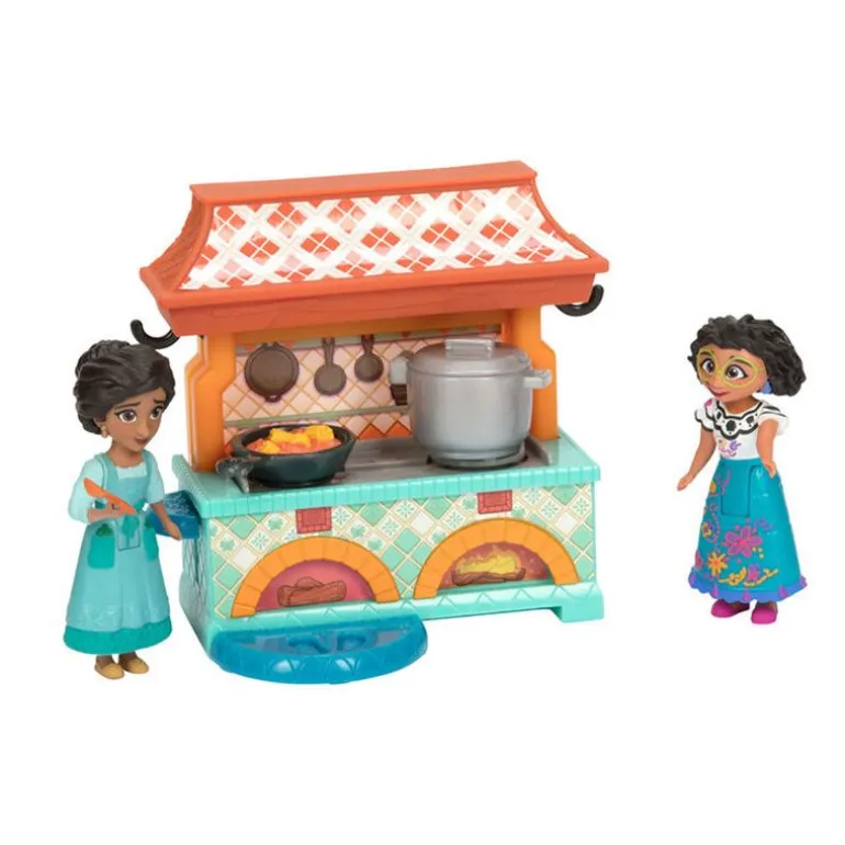 Spill ut scenen der Julieta hjelper Mirabel til å føle seg bedre ved å bruke sin magiske gave til helbredelse gjennom mat, og oppdag hvordan kjøkkenet leker med Mirabel når hun prøver å lage mat! Dette settet inkluderer Julieta, Mirabel og et kjøkken komplett med matlagingstilbehør. Trykk på spaken på siden av kjøkkenet for å få gryten til å boble. Når Mirabel settes på plattformen foran gryten, glir den vekk fra henne på komfyren når hun vil lage mat! Trykk ned på krokene på hver side av kjøkkenet for å endre bakgrunn til en kaotisk matlagingsbakgrunn!