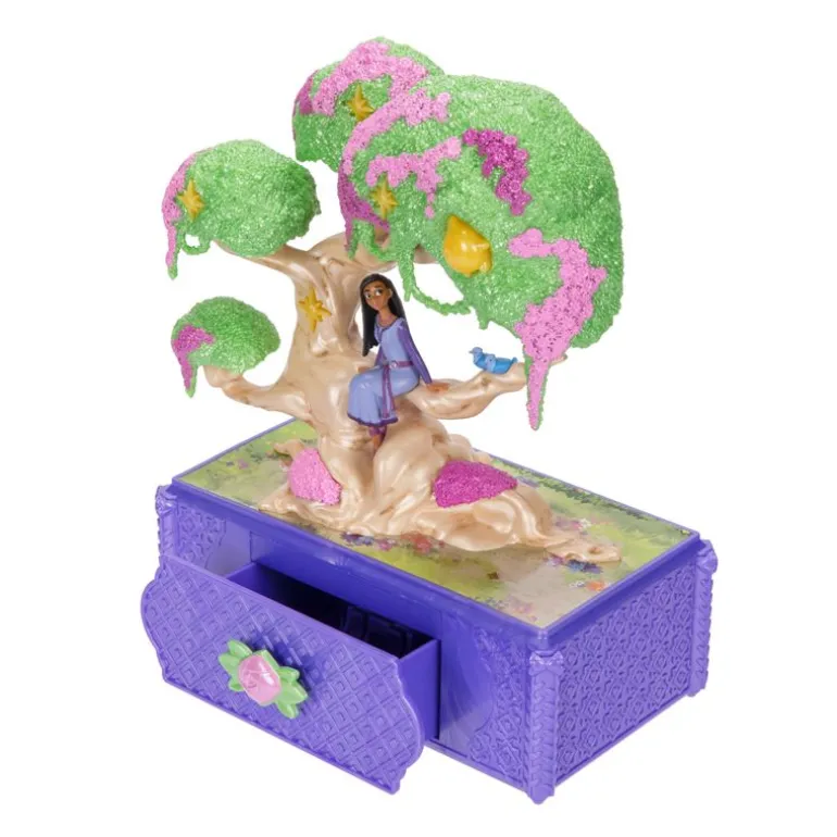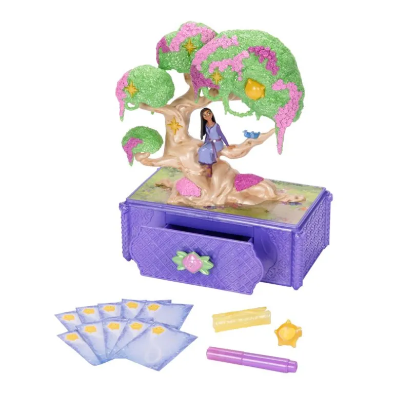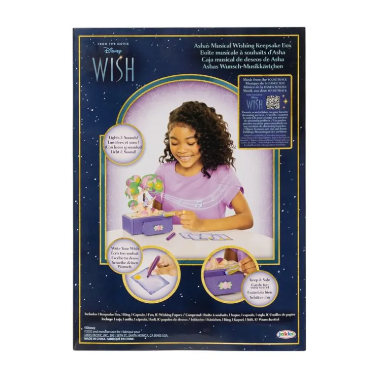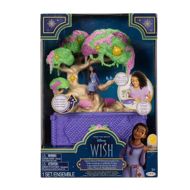 Spesielle ønsker fortjener et spesielt sted hvor de holdes trygt, så legg dine i Ashas Ønsketre Minneboks. Finn ditt ønske og skriv det ned på ønskepapiret, og legg det deretter i spesialkapselen. Plasser ønsket ditt i skuffen og se magien til Disneys nye animasjonsfilm Ønske bli levende når stjernene i ønsketreet lyser på magisk vis mens Ashas sang «This Wish» spilles. Kommer med en minnesmerke Star-ring som du kan oppbevare trygt i skuffen med dine ønsker når du ikke har den på deg.