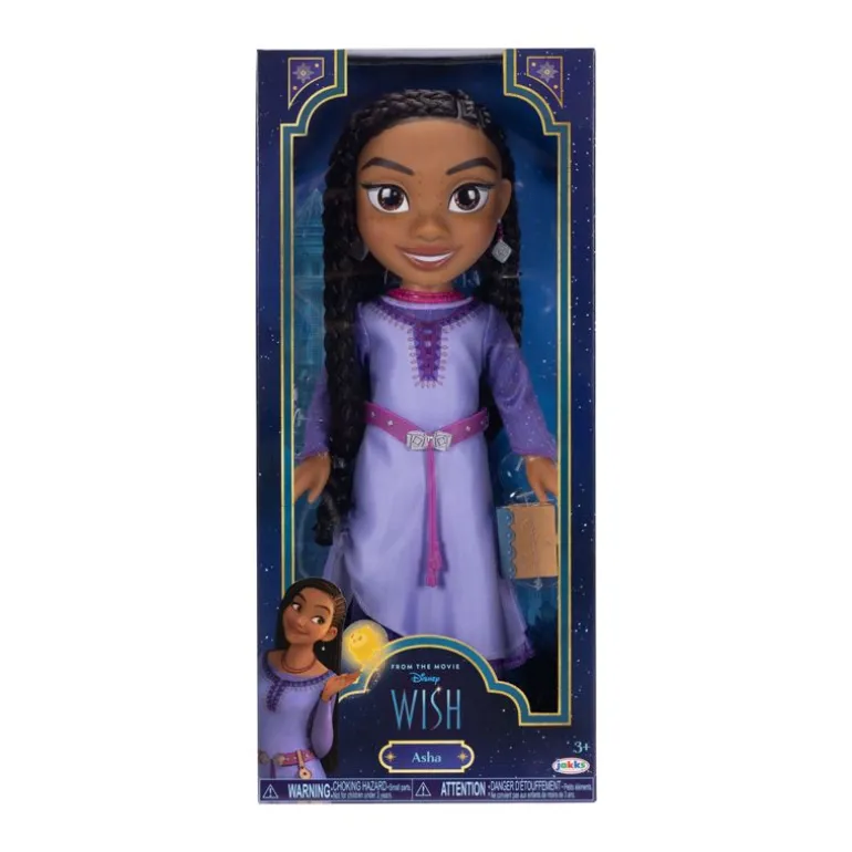 Legg ut på magiske eventyr med denne 38 cm høye Asha-dukken. Akkurat som i den nye Disney-animasjonsfilmen Ønske, har den vakre og modige Asha på seg sitt lilla signaturantrekk og tilbehør, og hun har sin tradisjonelle flettefrisyre, stylet for hånd. Asha kommer også med dagboken sin så du kan ta med deg vennen din Asha og hennes ønsker for å gjøre hver dag til en magisk reise!