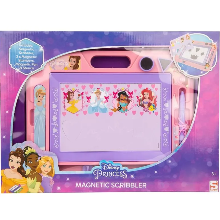 Flott magnetisk tegnetavle med motiver av de populære Disney Prinsessene Belle, Askepott, Jasmin og Ariel. Barn kan utforske og lære med denne flotte Disney Prinsesse magnetiske tegnetavlen! Tegnetavlen er den perfekte måten å inspirere nysgjerrighet, kreativitet og læring hos de små. Størrelse tegnebrett: 38 x 28 cm. Fra 3 år.