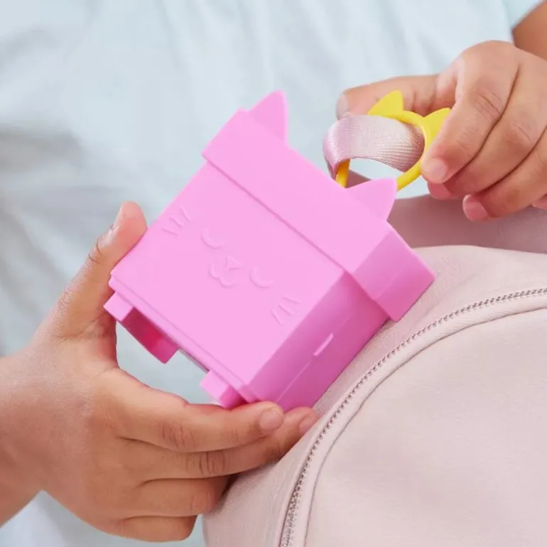 Akkurat som Gabby gjør i begynnelsen av hver episode, pakk ut dukkehusleveringen og oppdag overraskelsestilbehøret, en hobbysaks, som kan brukes på lekeeventyret! Når spilletiden er over, legg Baby Box Cat og tilbehøret i lekesettet, lukk det igjen og heng det på ryggsekken til det er på tide å leke igjen! For enda mer spennende dukkehuseskapader, samle alle tre av Gabby’s Dollhouse stablebare clip-on minilekesett, som MerCat’s baderom og Cakey Cat’s kjøkken!