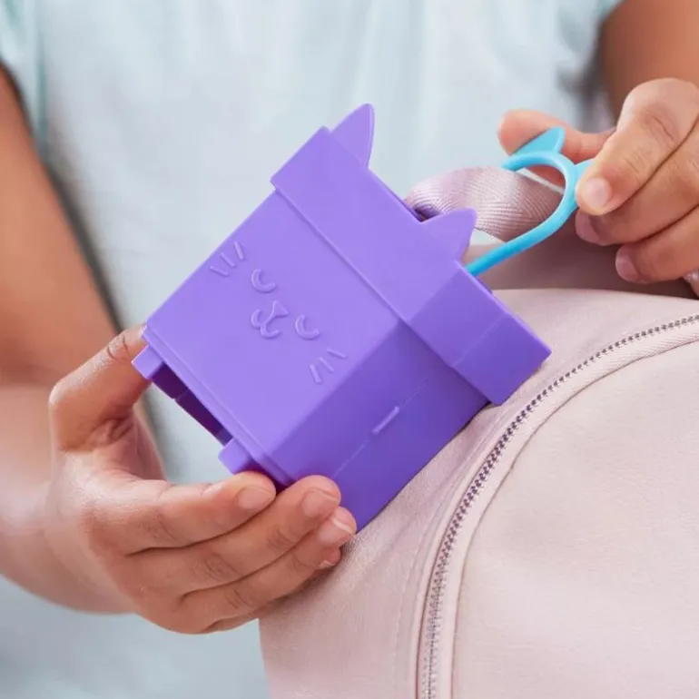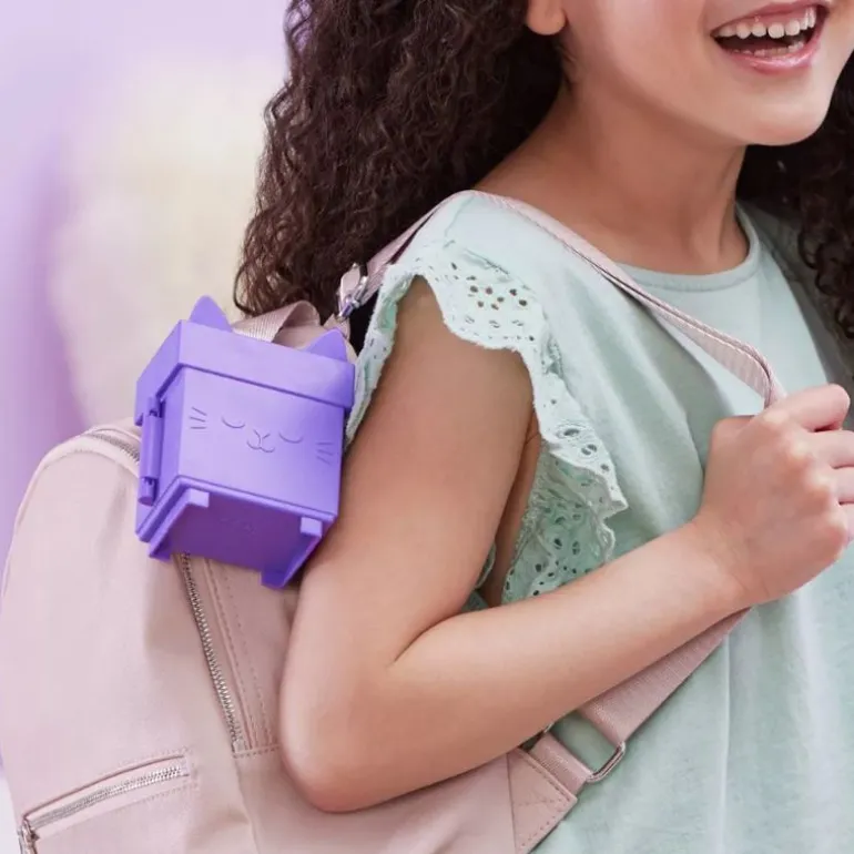 Akkurat som Gabby gjør i begynnelsen av hver episode, pakk ut dukkehusleveringen og oppdag overraskelsestilbehøret, en parfymeflaske, som kan brukes på lekeeventyret! Når spilletiden er over, legg MerCat og tilbehøret i lekesettet, lukk det igjen og heng det på ryggsekken til det er på tide å leke igjen! For enda mer spennende dukkehuseskapader, samle alle tre av Gabby’s Dollhouse stablebare clip-on minilekesett, som Baby Box Cat’s hobbyrom og Cakey Cat’s kjøkken!