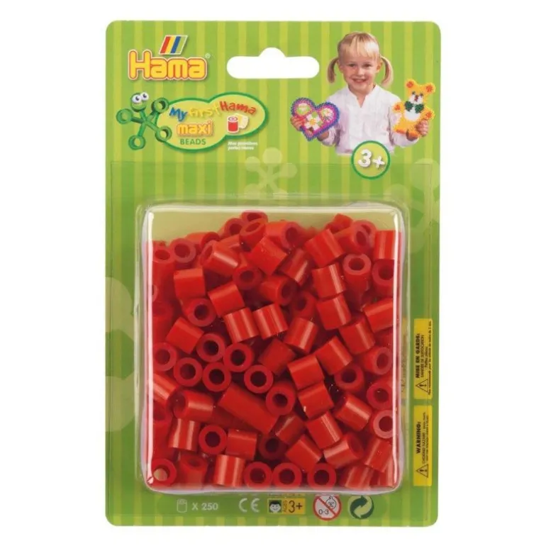 Sammen med andre flotte Hama perler og perlebrett kan det lages utallige mønster og figurer. denne pakken består av 250 Hama Maxi perler i en rød farge. Hama Maxi er perfekt for de små for å la dem bruke fantasien og kreativiteten sin ved å perle stilige figurer.