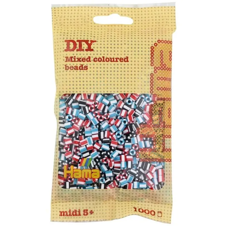 - Pakken inneholder ca. 1000 Hama Midi Mix 91 stripete perler