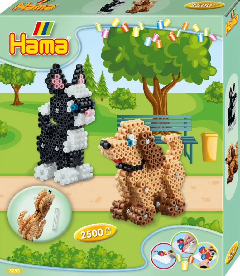Dette perlesettet kommer med hele 2500 midi perler i forskjellige farger og et perlebrett som kan brukes til å perle flotte motiver av en supersøt hund og katt i 3D format!