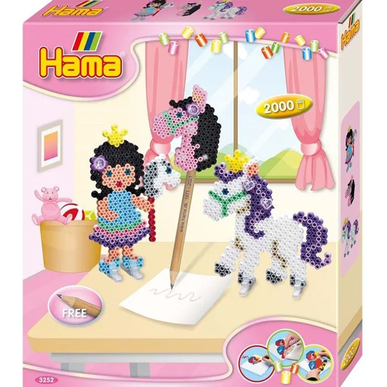 Perle flotte ponnier med dette morsomme perlesettet i midi størrelse fra Hama! I esken finner du 2000 perler i flotte farger som du kan bruke til ponniene. Det følger også med et motivark for inspirasjon til hvordan du kan perle figurene dine, og strykepapir slik at du kan ta vare på det du perler.