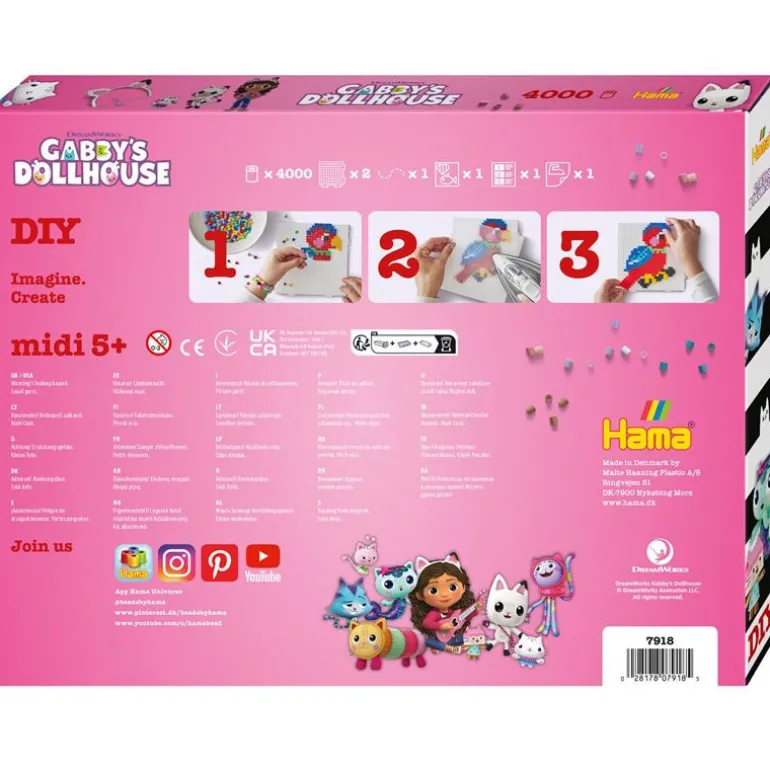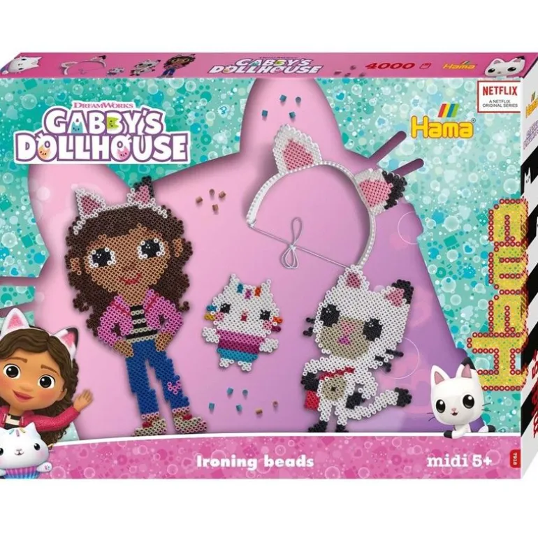 Barn kan perle sine favoritt karakterer fra den populære animasjons TV-serien Gabby’s Dollhouse! Denne Hama Midi gaveesken kommer med 4.000 perler, 2 perleplater nr. 234TR, motivark, veiledning og strykepapir.
