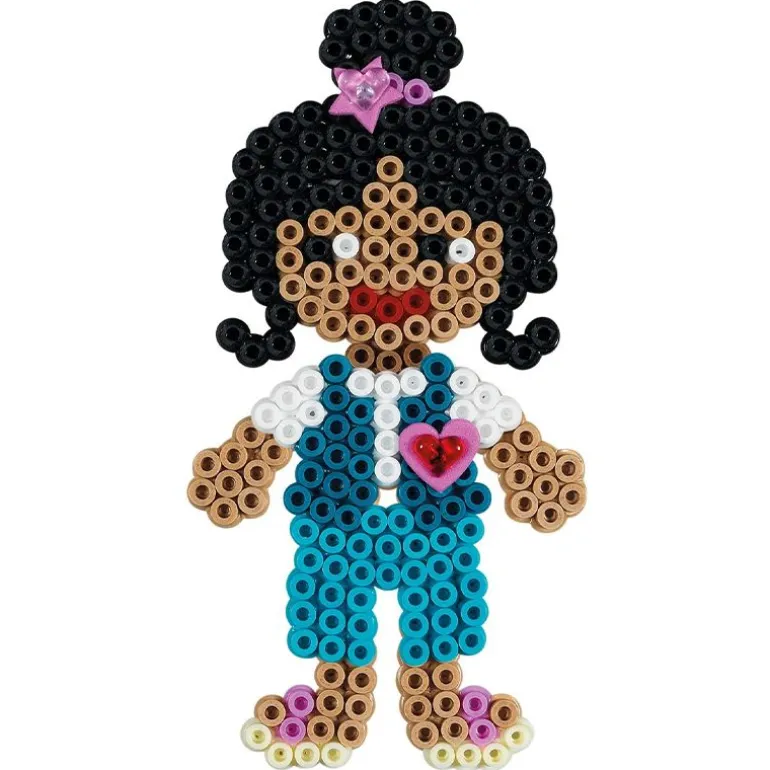 Perle en hel garderobe til vennegjengen med dette morsomme perlesettet fra Hama! Bruk perlebrettet formet som en jente og lag din vennegjeng. Sett i gang med å perle forskjellige flotte antrekk til jentene – her er det bare fantasien som setter grenser! Dekorer klærne med søte klistermerker før du fester de til jentene. Bytt antrekk så mangeganger du ønsker. Nå er jentene klare til spennende nye eventyr i sine flotte klær!