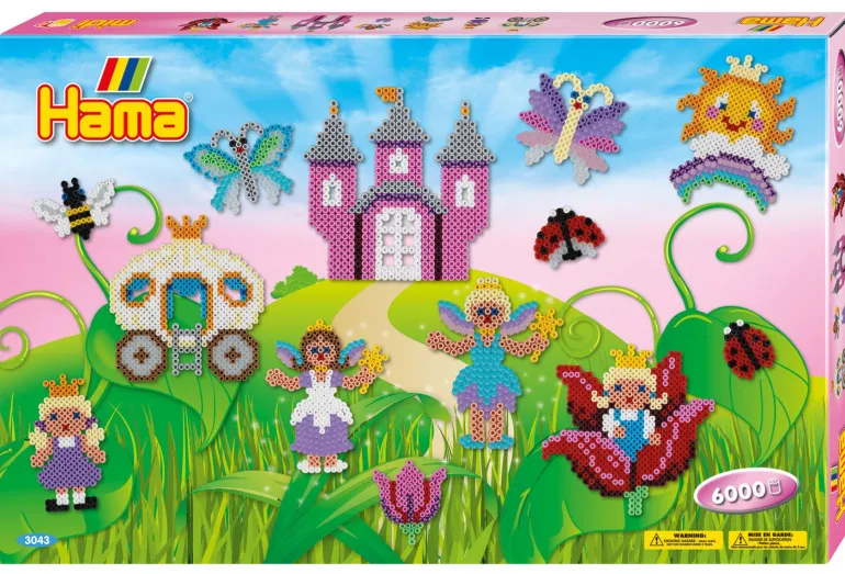 Slipp fantasien løs og perle blandt annet flotte feer, sommerfugler, blomster, m.m. med dette perlesettet fra Hama.Perlene er i størrelsen midi perler.I pakken får du 6000 perler i forskjellige farger, 3 perlebrett (firkant, sommerfugl og fe), designmal, bruksanvisning og strykepapir.Passer fra 5 år+