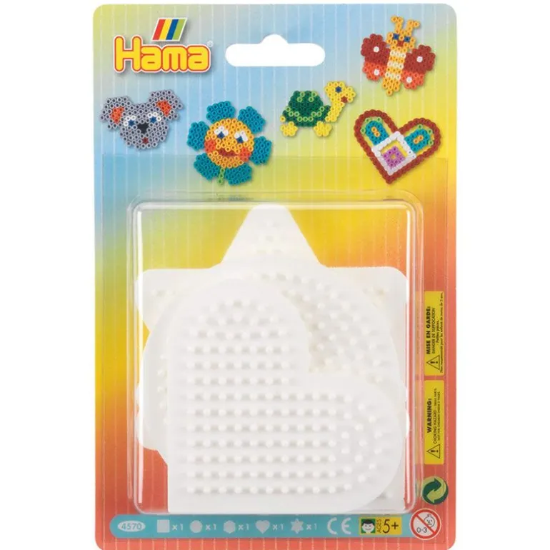I dette settet fra Hama får du 5 flotte former du kan perle. Perlebrettene kommer i form av kvadrat, sirkel, sekskant, hjerte og stjerne. Lag flotte mønster med forskjellige fargekombinasjoner med Hama Midi perler (selges separat).
