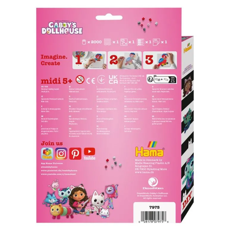 Barn kan perle sine favoritt karakterer fra den populære animasjons TV-serien Gabby’s Dollhouse! Denne Hama Midi gaveesken kommer med 2.000 perler, 1 perleplater nr. 234TR, motivark, veiledning og strykepapir.