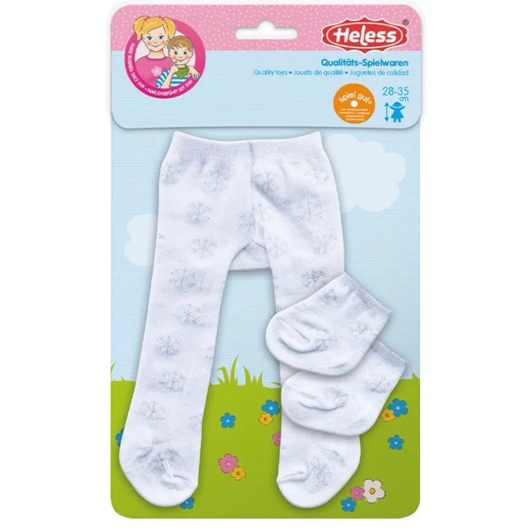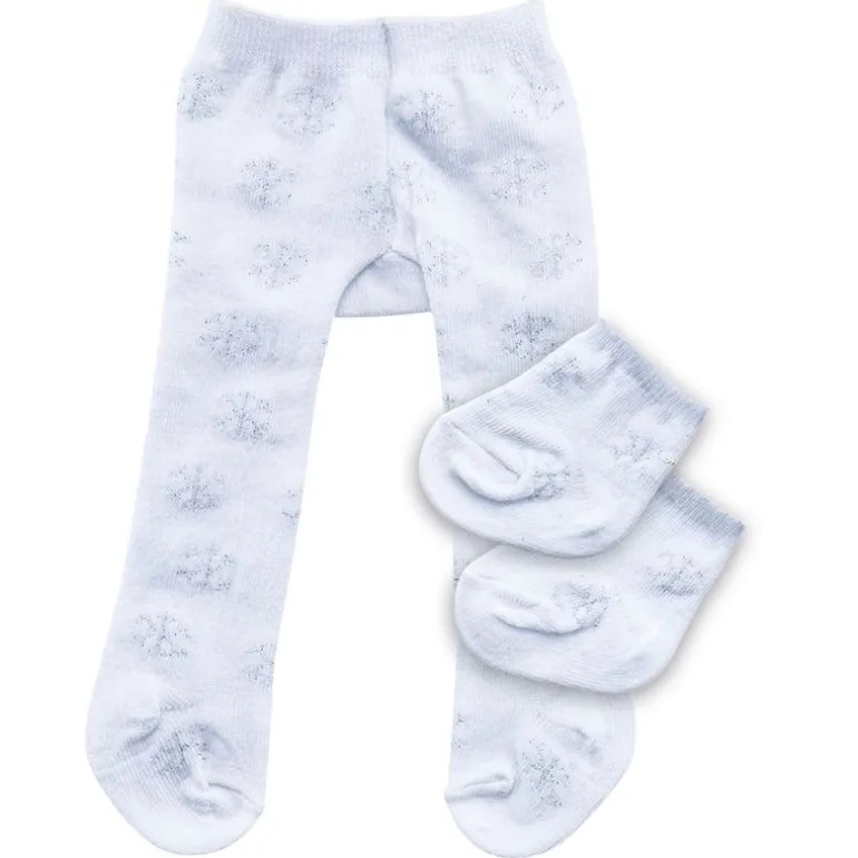 Flott strømpebukse og sokker i hvit med snøfnugg i sølv fra Heless.