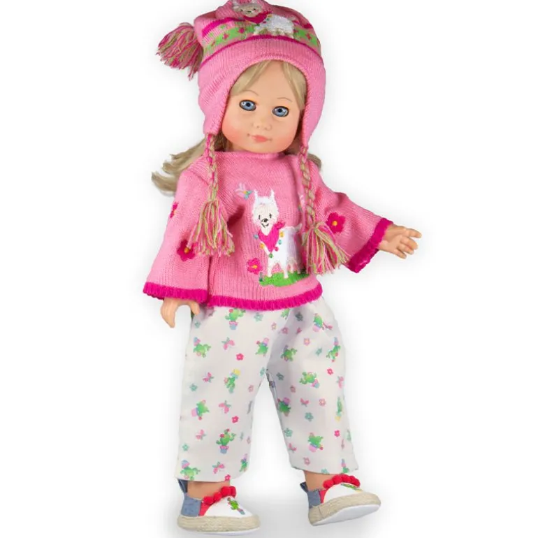Stilig lue i rosa med motiv av en søt alpakka fra Heless.