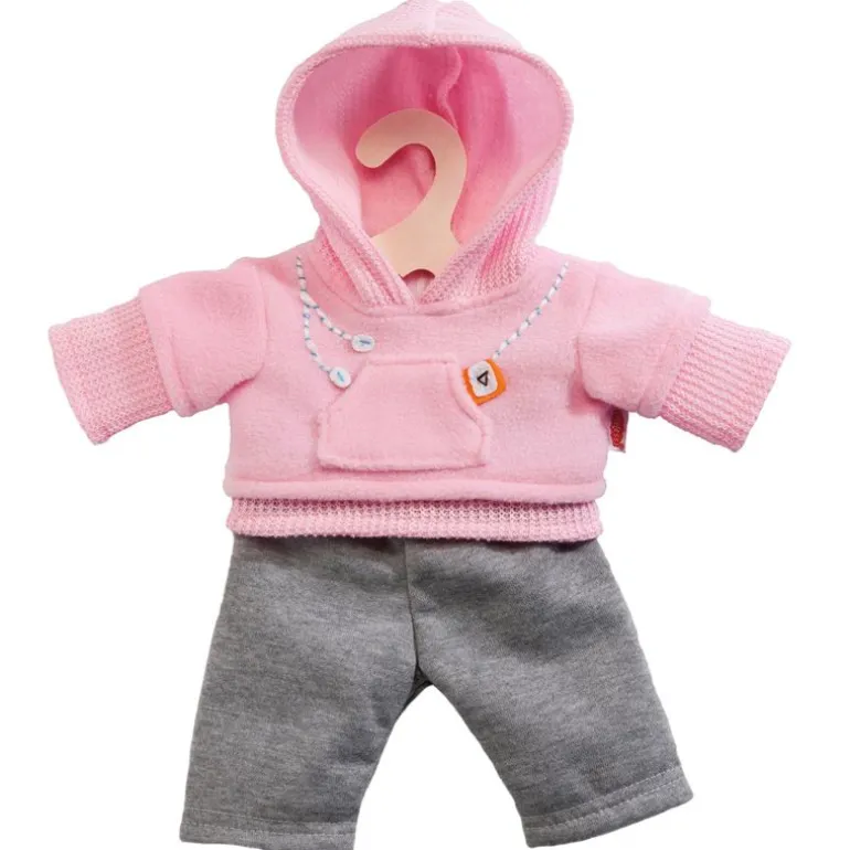 Enten det er for trening eller bare for å slappe av: Heless moteriktige og komfortable joggedress passer perfekt til begge formål. Med gråmønstrede bukser og enten en rosa eller lyseblå hettegenser, vil dukken både se og føle seg helt fantastisk. Praktisk kleshenger i tre følger med. Passer de fleste dukker fra 28-35 cm. Selges assortert.