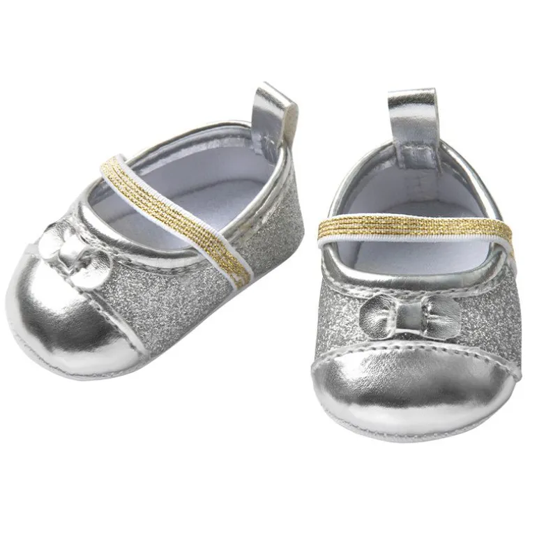 Gi dukken en ekstra dose glam med Heless ballerinaskoene i sølv! Disse stilige ballettskoene passer til dukker som er mellom 28-35 cm og gir dukken et elegant utseende. Den sølvfargede overflaten med glitter gjør dem perfekte for både hverdagseventyr og festlige anledninger.