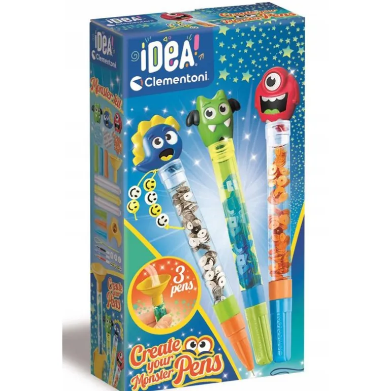 Med Idea Clementoni DIY design-sett kan barna skape sine egne, unike penner inspirert av en monster verden! Settet inneholder alt de trenger for å dekorere tre penner med fargerike paljetter og detaljer som gir et glitrende og magisk preg. Dette DIY-settet gir barna friheten til å utforske sin egen kreativitet og skape noe helt spesielt som de kan bruke i hverdagen.