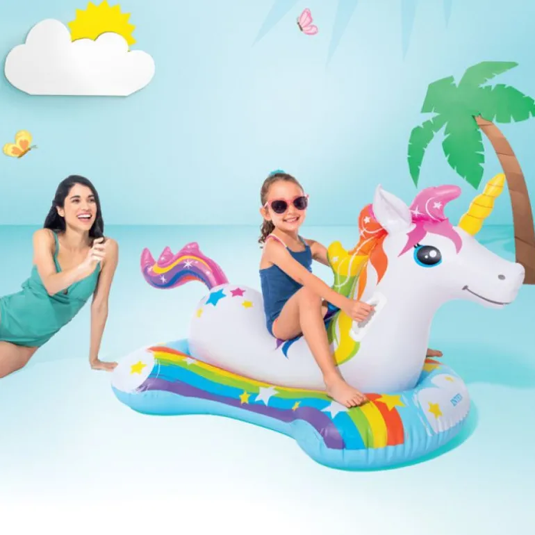 - Oppblåsbar ride-on i form av en søt enhjørning